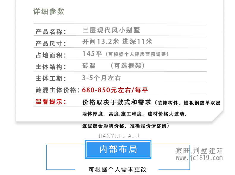 13.2×11米 三層現(xiàn)代風(fēng)別墅 占地145平方 編號(hào) 0617